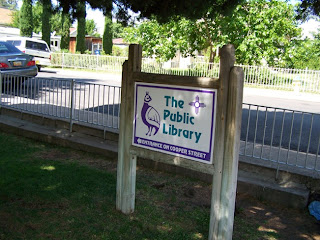 The public library, which was having a book sale. I got a whole box of books for $7. Including a vintage knitting/needlework book, a book about classic movies, and one by Theodore Dobzhansky